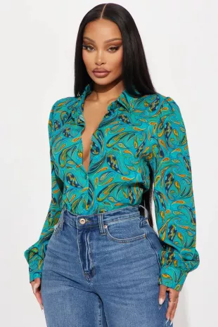Fashion Nova Belize Chemise imprimée portée par Diamond Degraff comme on le voit dans Ms. Pat Settles It (S02E08)