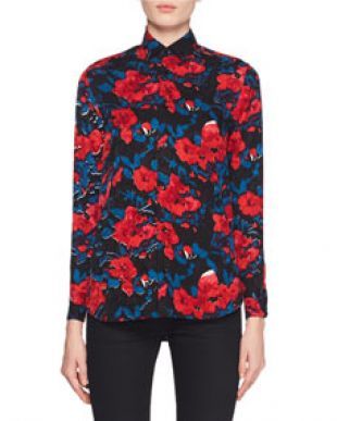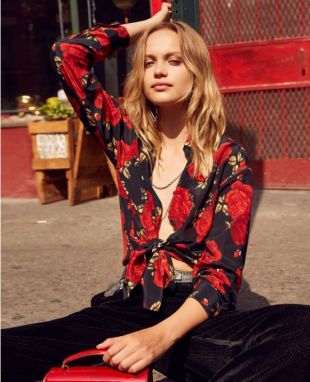 The Kooples United States Official Website Red and black silk shirt with Sleeping Roses print