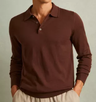 Polo en laine mérinos Reiss Trafford en brun mélasse porté par Ron Lawson (J. Anthony Crane) comme on le voit dans Law & Order (S24E12)