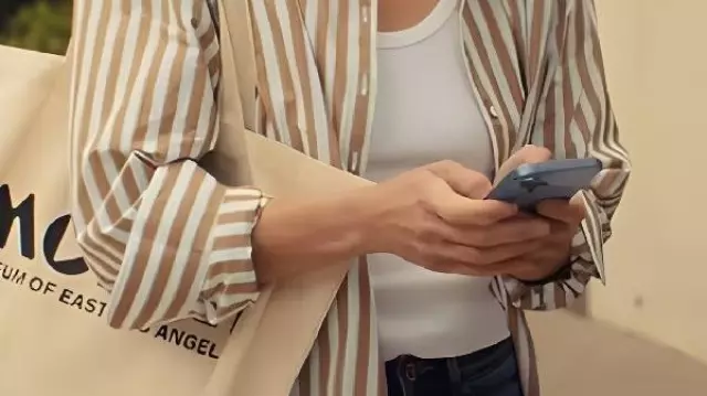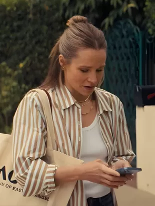 Chemise rayée beige et blanche portée par Joanne (Kristen Bell) dans Nobody Wants This