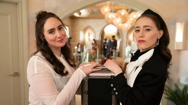 Tenues de Only Murders in the Building : Tawny Brothers (Siena Werber) porte une veste courte à col papillon blanc dans la saison 4, épisode 5