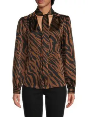 Lessive de Shelli Segal Blouse à imprimé animal portée par Sofia Caccimelio (Téa Leoni) comme on le voit dans Seulement des meurtres dans l’immeuble (S05E05)