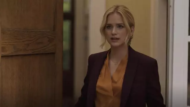 Kobi Halperin Nellie Plissé Col V Chemisier à Manches Longues porté par Jenny Banks (Elizabeth Lail) comme on le voit dans Ordinary Joe (S01E02)