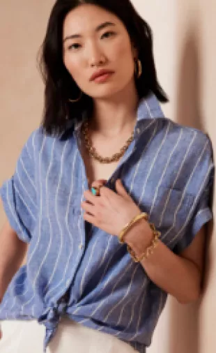 Banana Republic Petite Linen Resort Shirt porté par Sylvia (Rose Byrne) comme on le voit dans Platonic (S02E01)