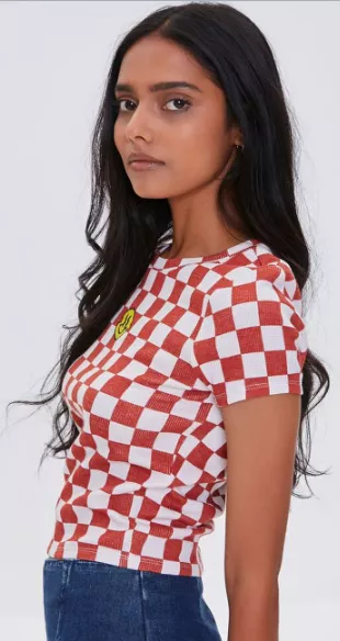 T-shirt graphique Forever 21 Checkered Happy Face porté par Courtney Whitmore (Brec Bassinger) comme on le voit dans Stargirl de DC (S03E13)