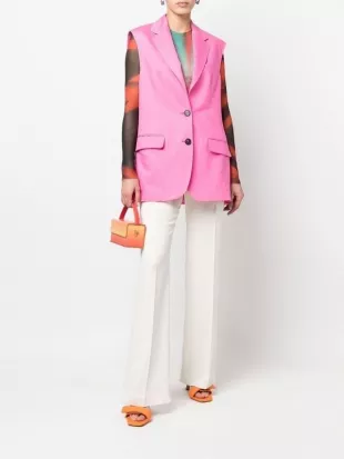 Gilet à une poitrine Msgm porté par Prue Leith comme on le voit dans The Great British Bake Off (S13E01)