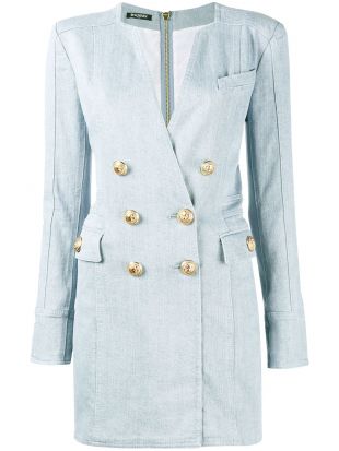Balmain à Double Boutonnage en Denim Mini Robe portée par Pamela Brinton (Kristen Wiig) dans Le Dernier Homme sur la Terre (Saison 04 Épisode 03)