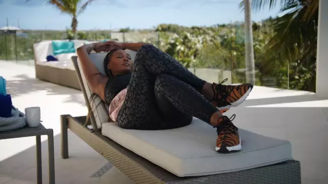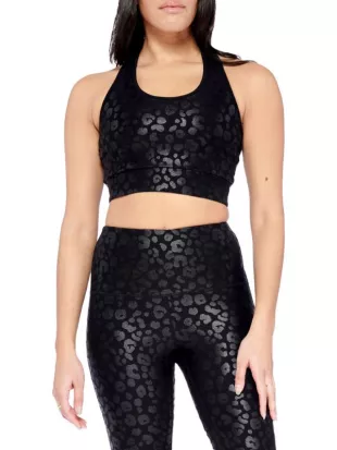Soutien-gorge de sport électrique Yoga Independence Cheetah porté par Cynthia Bailey comme on le voit dans The Real Housewives Ultimate Girls Trip (S01E06)