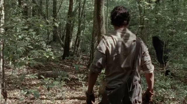 Le sacoche militaire kaki Rothco de Rick Grimes (Andrew Lincoln) dans The Walking Dead S04E01