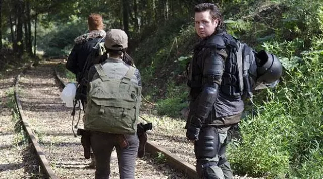 Les protections aine et cuisse de Eugene (Josh Mcdermitt) dans The Walking Dead