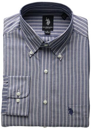 U.S. Polo Assn. Men's Navy with White and Red Stripe, Blue, 16"-16.5" Neck 32"-33" Sleeve (Large)