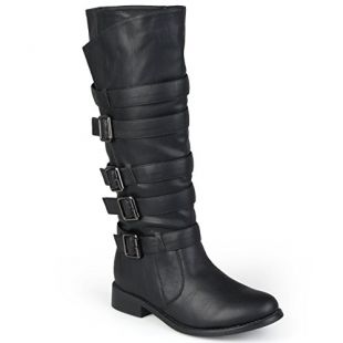 Brinley Co. Womens Regular and Wide-Calf Knee-High Multiple Strap/Buckles Riding Boot Black 9 Wide Calf