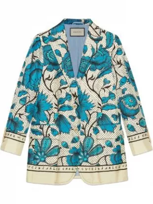 Gucci Aquarelle Floral Imprimé Veste en soie portée par Diana Trout (Miriam Shor) vue dans Younger (S06E01)