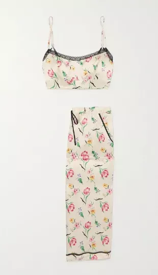 Morgan Lane Noelle Petal Floral Print Silk Blend Satin Pajama Set porté par Liza Miller (Sutton Foster) comme on le voit dans Younger (S07E05)