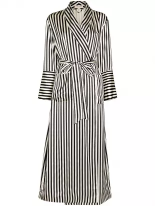 Olivia von Halle Robe de chambre en soie rayée portée par Maggie Amato (Debi Mazar) vue dans Younger (S07E11)