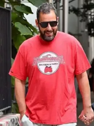 NYC 2025 T-shirt rouge porté par Adam Sandler chez ADAM SANDLER à New York ! ???? #nyc #adamsandler