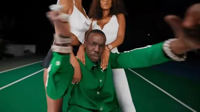 Palm Angels Forest Green & White Stripe Snap Shirt porté par Bobby Shmurda dans Bobby Shmurda - Shmoney (Official Music Video) ft. Quavo, Rowdy Rebel