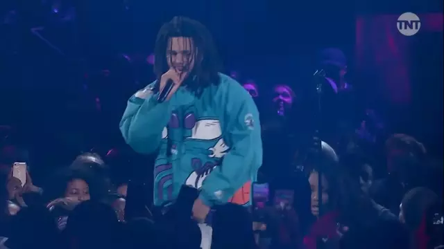 J. Cole porte une veste à capuche Charlotte Hornets des années 90 pour le spectacle de la mi-temps du NBA All-Star Game 2019