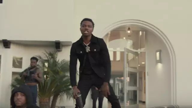Noir slim en denim pantalon porté par Roddy Ricch comme on le voit dans son Hors Tha Boue de la musique de la vidéo