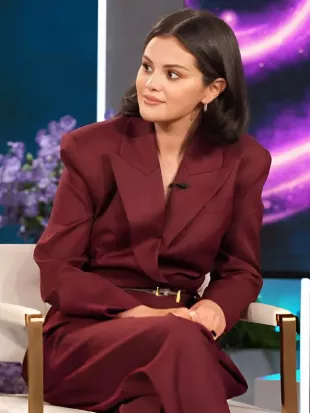 Le blazer court marron porté par Selena Gomez dans Selena Gomez partage la signification particulière de ses 3 looks de mariage