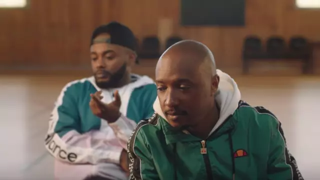 La veste zippée Ellesse verte et orange portée par Soprano dans son clip Le Coach feat. Vincenzo