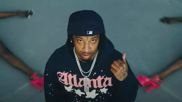 Spider Worldwide Navy & Pink Atlanta Hoodie porté par 21 Savage en Travis Scott - TOPIA TWINS (Official Music Video) ft. Rob49, 21 Sauvage